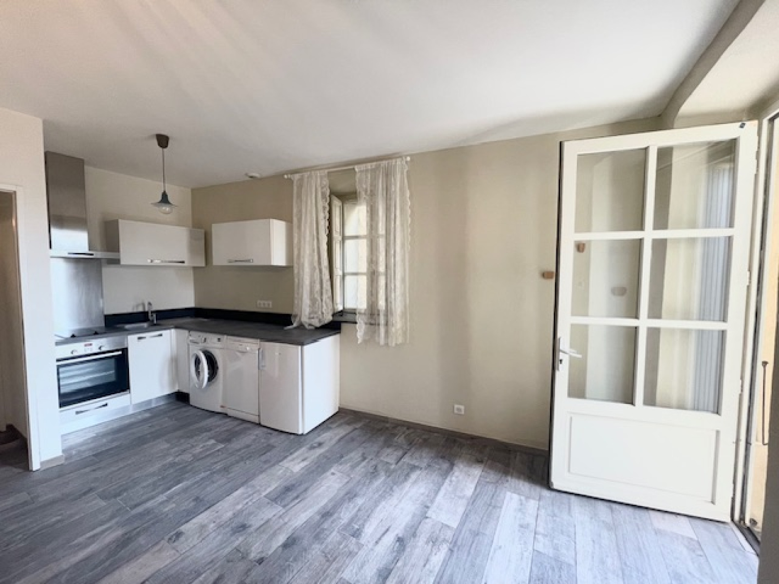 Ce bien au caractère atypique est situé au rez-de-chaussée et se compose d'une entrée directe dans un séjour de 19 m² avec coin cuisine équipée (plaque de cuisson, hotte, réfrigérateur, lave-vaisselle, four, machine à laver), une chambre avec placard mural et une salle d'eau avec WC.