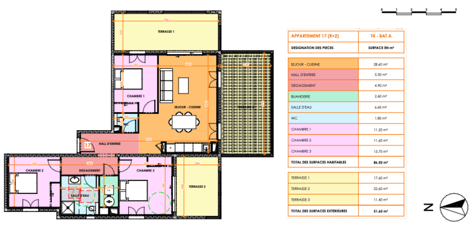Cette résidence de 60 appartements, allant du studio au T4 bénéficiant d'une terrasse et/ ou d'un jardin ainsi qu'une à deux places de stationnements privatives. En option la possibilité de faire l'acquisition d'un garage au prix de 17500€ et/ou d’une place de stationnement au prix de 5000€.