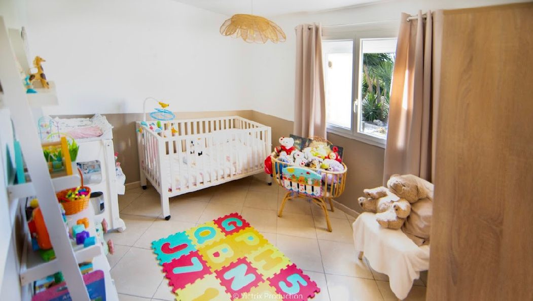 douches, à l'étage, de deux chambres dont une suite parentale avec salle de bains, et d'un coin bureau,